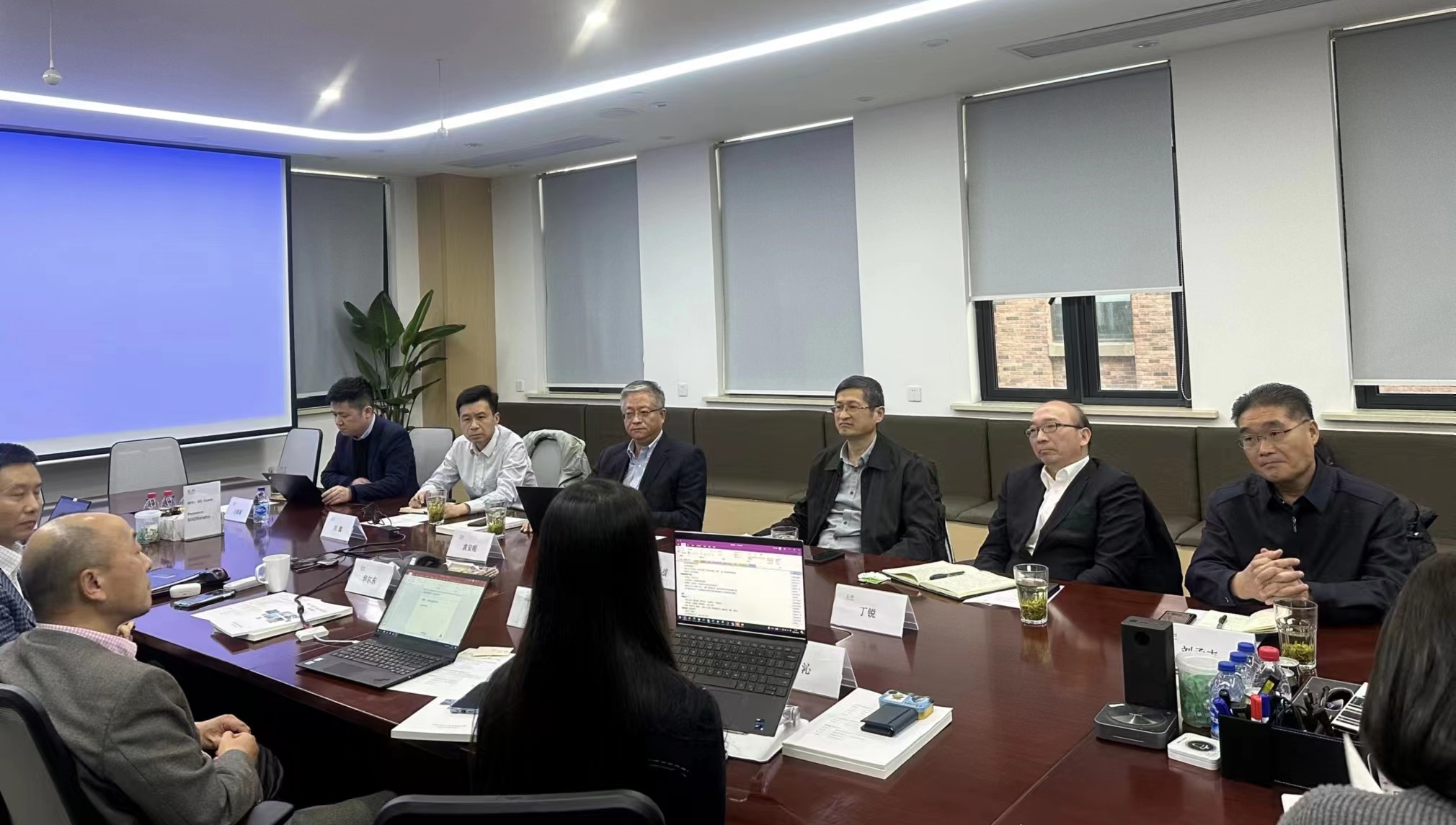 在通和毓承上海總部,丁銳與市工信局局長席世戰(zhàn)、市金融控股集團副總經(jīng)理劉懿等一行拜訪了該公司首席執(zhí)行官陳連勇,并同天匯資本董事長袁安根等舉行了座談,五方就創(chuàng)業(yè)項目合作模式設計、利益共建共享方式、風險防范措施等內(nèi)容進行了深入分析研究,并形成了初步合作策略。