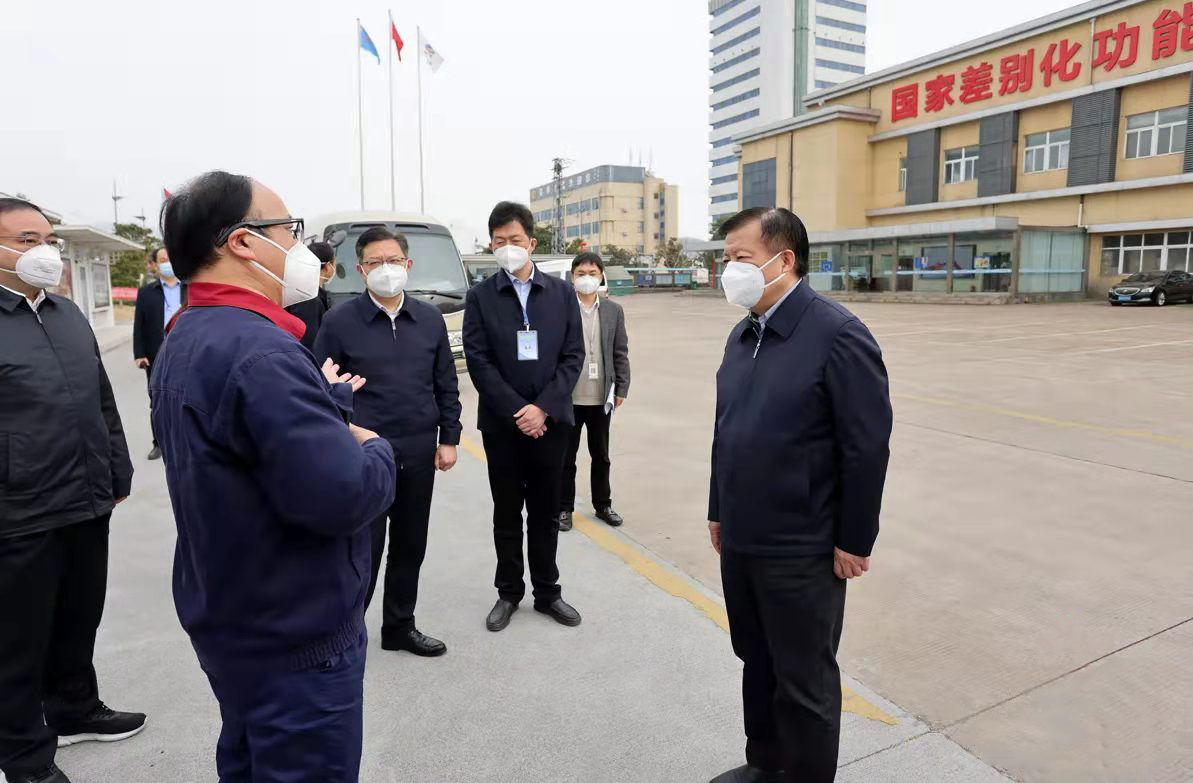 3月16下午,市委書記方偉到集團調研,并在氨綸公司檢查疫情防控工作。市領導林小異、商振江陪同,集團公司黨委書記、董事長楊龍參加調研。