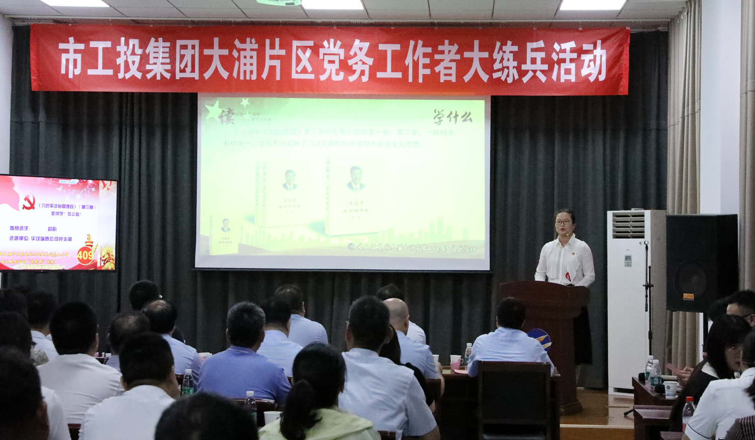 為進(jìn)一步提高基層黨務(wù)工作者“說、寫、做”能力,不斷提升基層黨建規(guī)范化建設(shè)水平,9月4日下午,集團(tuán)公司黨委在神特新材料公司開展大浦片區(qū)黨建結(jié)對(duì)共建單位黨務(wù)工作者大練兵活動(dòng)。市委組織部黨員教育中心主任許志青、市國(guó)資委黨群工作處處長(zhǎng)閆超群、集團(tuán)公司黨委副書記戴鴻鳴等出席活動(dòng)。 本次大練兵活動(dòng)立足“以考強(qiáng)兵,破解理論不精;以講練兵,確解業(yè)務(wù)不足”,由公文撰寫和現(xiàn)場(chǎng)“說黨課”比賽兩部分組成,來自大浦片區(qū)黨建共建單位9個(gè)黨支部的10名基層黨務(wù)工作者同臺(tái)競(jìng)技,展示風(fēng)采。