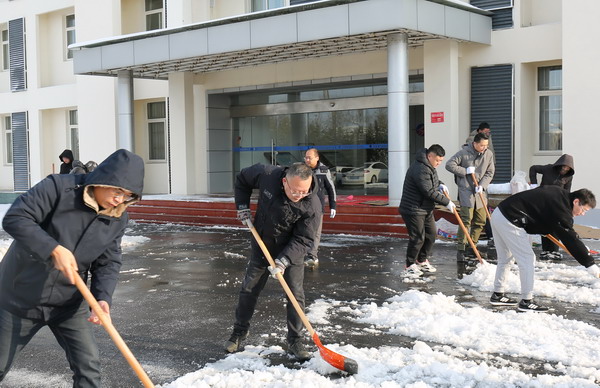 為保障道路暢通和員工出行安全,2月5日上午,我公司組織掃雪除冰義務(wù)勞動。