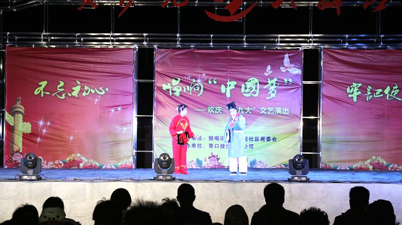 10 月 23 日 晚,猴嘴街道黃沙坨社區(qū)和青口公司聯(lián)合舉辦的以“不忘初心 牢記使命 唱響中國(guó)夢(mèng)”為主題的慶十九大文藝演出活動(dòng)在黃沙坨大舞臺(tái)舉辦,這是在秋收前,用豐富多彩的文娛方式慶祝十九大召開。猴嘴街道黨工委副書記王新崗、公司黨委副書記、副總經(jīng)理史祥平現(xiàn)場(chǎng)觀看了演出。