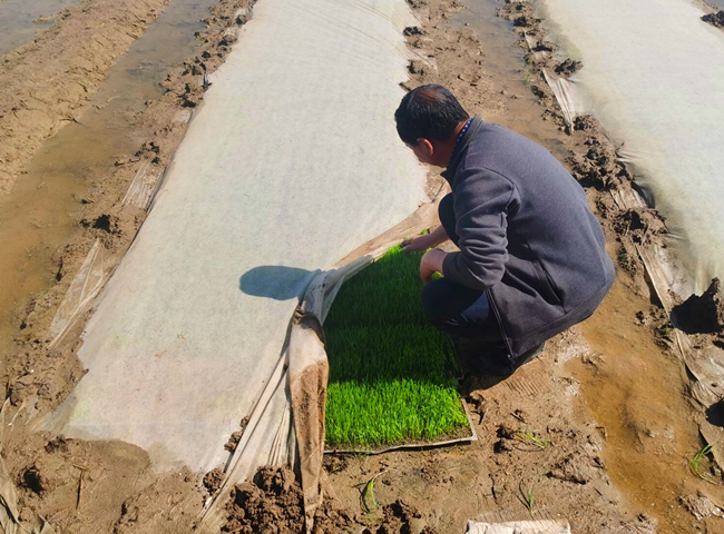 近期,大新農(nóng)場組織對自營農(nóng)田機插秧集中檢查,目前秧苗生長正常已達到1.5-2葉秧齡。由于天氣良好溫度持續(xù)上升,預(yù)計5月下旬即可揭開無紡布進行秧苗管理,6月上旬開始插秧。(劉 楊)