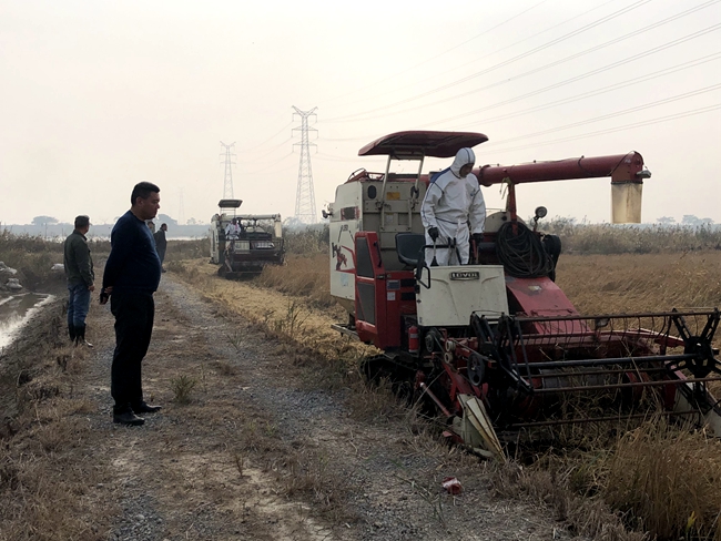 十一月,正是水稻豐收的季節,近日生態種養中心積極抓住天晴有利時機,利用兩臺收割機加緊對60水稻進行收割,確保顆粒歸倉。 (