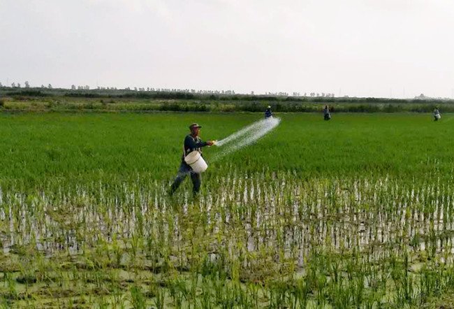 (對秧苗進行撒施分蘗肥)