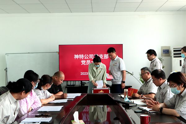 6月2日上午,公司黨支部召開黨員大會,公司全體黨員參加會議,討論和表決王勇等7名發展對象入黨事項。會議由公司黨支部副書記王琪主持。