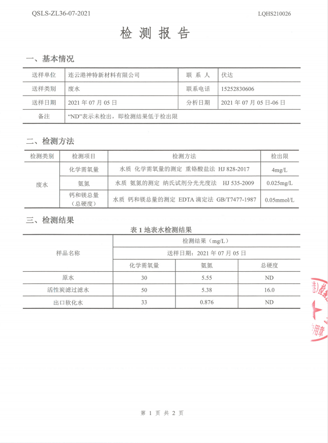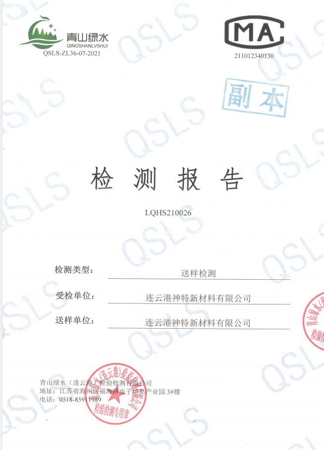神特公司檢測報告公示