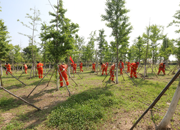????? 活動分為四組進行,四組黨員突擊隊跟隨引導員的腳步到達各自片區(qū),進行綠化帶雜草清除作業(yè)。在各組支部書記的帶領下,勞動中人人做表率,個個干勁足,有條不紊互相配合,一抹抹橘色在清新草色的襯托下格外美麗。